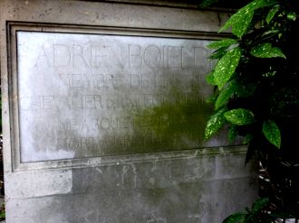 Après des obsèques nationales, François-Adrien Boieldieu fut inhumé au cimetière du Père-Lachaise où, sur son tombeau, bien caché dans la verdure, furent gravées quelques unes de ses œuvres.