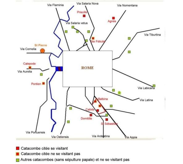 Au début du 3ème siècle, les choses changèrent quand le pape Zéphyrin nomma Calixte administrateur d’un cimetière de la via Appia. Celui-ci organisa de façon rationnelle les sépultures chrétiennes sur des terrains appartenant à l’Eglise et entièrement réservés aux chrétiens. Les persécutions de Septime-Sévère, Dèce, Valérien et de Dioclétien ayant créé de nombreux martyrs, les papes recommandèrent vivement de venir se recueillir sur leurs tombes.