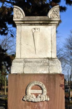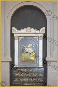 Sur le soubassement de son tombeau à l’antique des couronnes de laurier en relief entourent le nom des principales batailles auxquelles il participa et où il se distingua particulièrement.