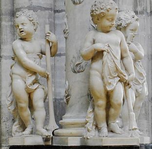 A l'origine le chapiteau du sommet portait un vase de bronze contenant le coeur et un enfant tenant la couronne royale qui disparurent à la Révolution. La colonne fut déposée au Musée des monument français avant d'être placée à Saint Denis. Le projet primitif de cette sépulture fut allégé. On utilisa trois des génies funéraires exécutés pour le tombeau de François Ier . Le vase et l'enfant ne furent pas remplacés. En revanche, Le Louvre conserve un des génies funéraires destiné à l'origine à la cathédrale d’Orléans.