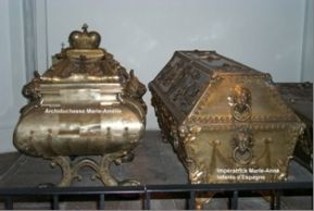 Selon la même tradition en vigueur pour les souverains, princes, hauts dignitaires, etc. de France, les corps des Habsbourg étaient vidés de leurs cœurs et entrailles lors de leur embaument. Mais, alors qu’en France un choix personnel fixait le lieu de sépulture des cœurs et entrailles les éparpillant en fonction des lieux à honorer, la plupart de ceux des Habsbourg furent respectivement rassemblés dans un même lieu : les cœurs dans l’église des Augustins et les entrailles dans la cathédrale Saint-Etienne, ces deux édifices se situant à proximité de l’église des Capucins.
